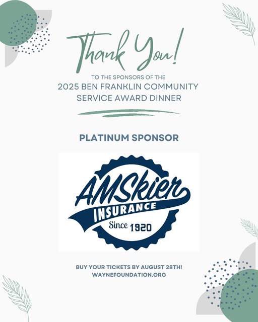 We would like to thank AMSkier Insurance for being a Platinum Sponsor of the 2025 Ben Franklin Community Service Award Dinner. We appreciate your continued support and look forward to seeing you at the dinner. While time is running out, there is still time to purchase your tickets to the dinner.