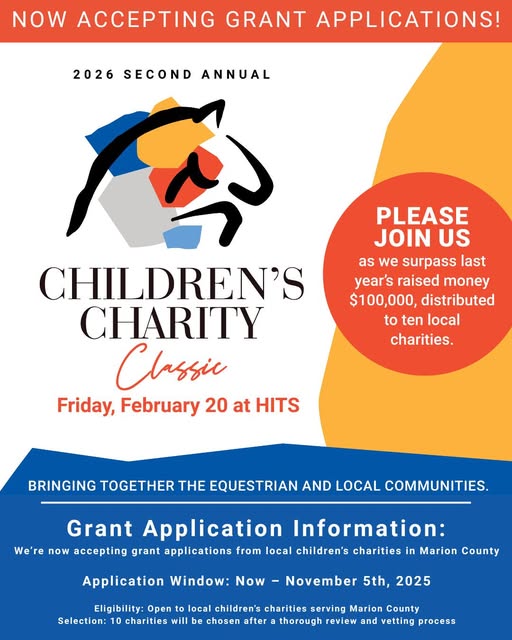 The Grant Application Window is NOW OPEN. 🎉 We’re gearing up for the Second Annual Children’s Charity Classic on February 20, 2026, at HITS Post Farm and we want YOU to be part of it. 🐴💙 Calling All Local Children’s Charities: The United Way of Marion County is now accepting applications through November 5, 2025.