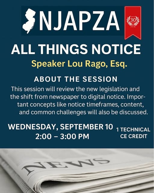 The Mission of the NJAPZA is to educate our members to the legal requirements of planning and zoning administration and public employment and thereby to promote a better understanding of the official duties and obligations of its members.
