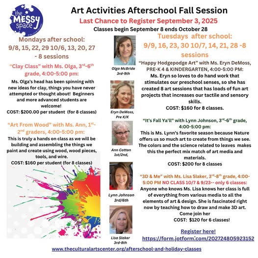Home | culturalartscenter Home About Our Tenants Events Our CAC Events Our Classes Camps Contact Us More Your community Arts Center filled with everything ARTS. WELCOME TO THE CULTURAL ARTS CENTER. The Cultural Arts Center is a nonprofit organization whose mission is to connect the arts to our communities in the Wiregrass. Established in May of 2002 and housed in the old Southside Elementary School the CAC provides accessibility for talented artists to gather and perform and continues to find innovative ways to expose children and seniors to the arts.