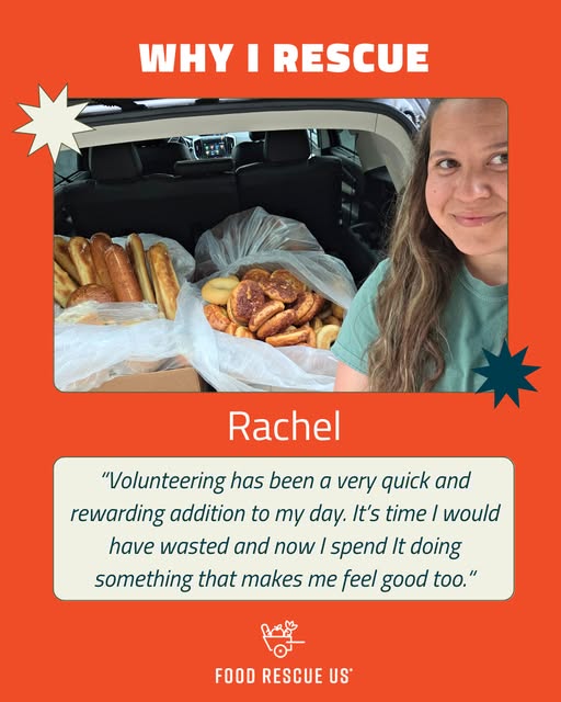 π£ Volunteers sound off: Why do you rescue. β β Rachel started volunteering with Food Rescue US - Akron as a way to meet requirements for an internship class at Ohio University. She continues to volunteer because she loves what she's doing and believes in the mission of Filling Plates Not Landfills.