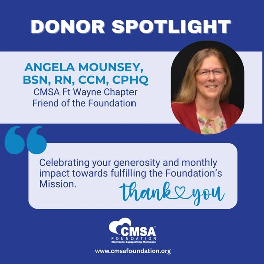 🌟 Donor Spotlight 🌟 Join the Foundation in celebrating one of our newest donors, Angela Mounsey. Thank you for your generous monthly support. This ongoing commitment allows the Foundation to continuing recognizing case managers who share their research and process improvements that demonstrate patient outcomes.