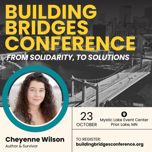 Come to the Building Bridges Conference 2025 for “What Helps, What Hurts: A Survivor’s Story of Systems, Healing, and What We Can Do Better” by Cheyenne Wilson. Cheyenne is the author of We Are the Evidence and brings her experience as a nurse and a survivor to advocate for systems change. Attendees will gain a deeper understanding of what helps, what hurts, and what healing-centered engagement truly looks like - especially when justice isn’t achieved through traditional means.
