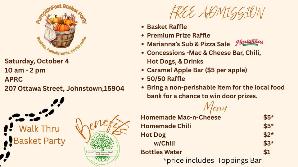 We are days away for the PumpkinFest Basket Party . Up for grabs 📺 50” flat screen Tv 🎄6ft prelit Christmas Tree Ninja Air fryer $800 gift certificate from @Mckelvey Kargo Law Firm in Salix includes drafting Last Will & Testaments for husband & wife, POA, Healthcare Directives, Living Wills & Signing Plus over 50 baskets. Need not be present to win.
